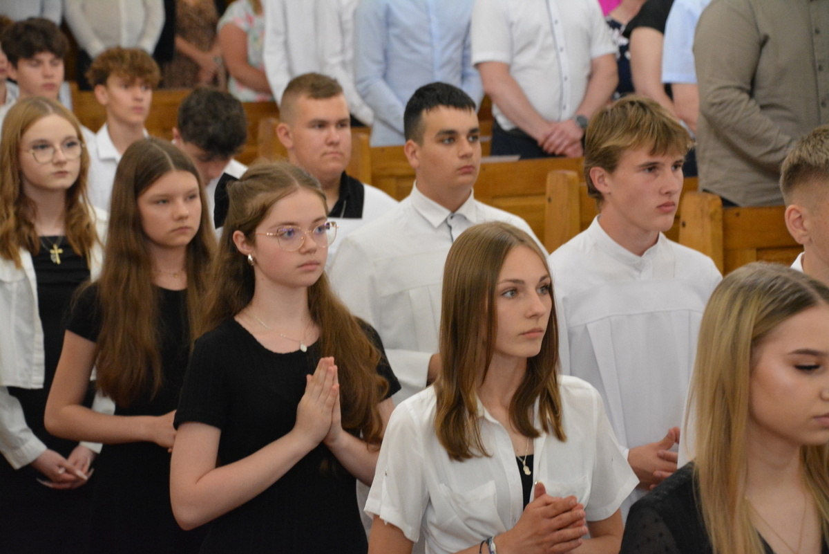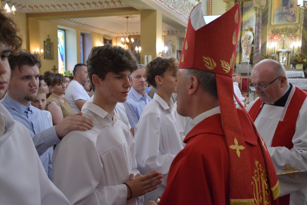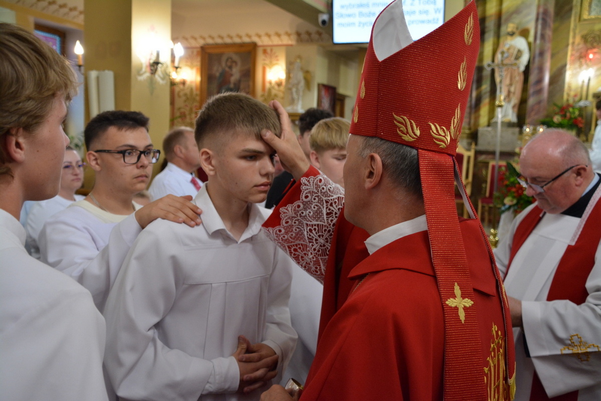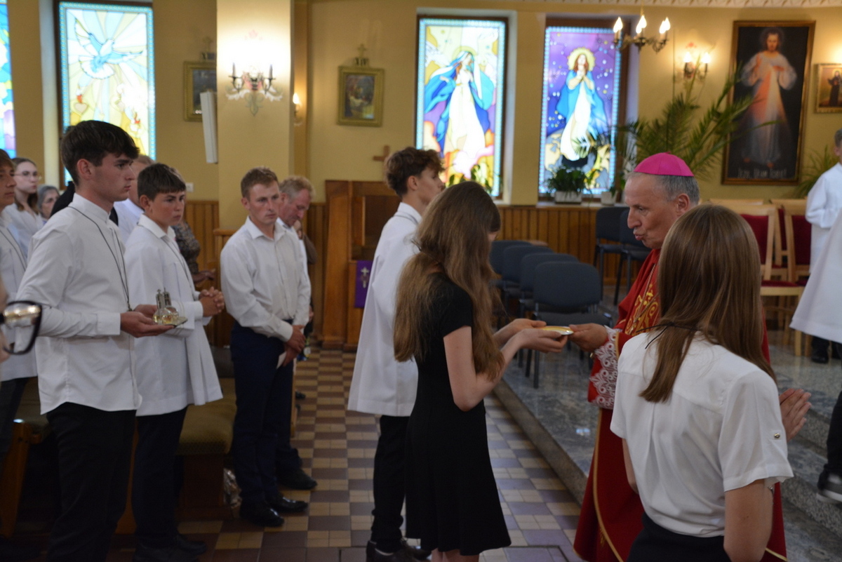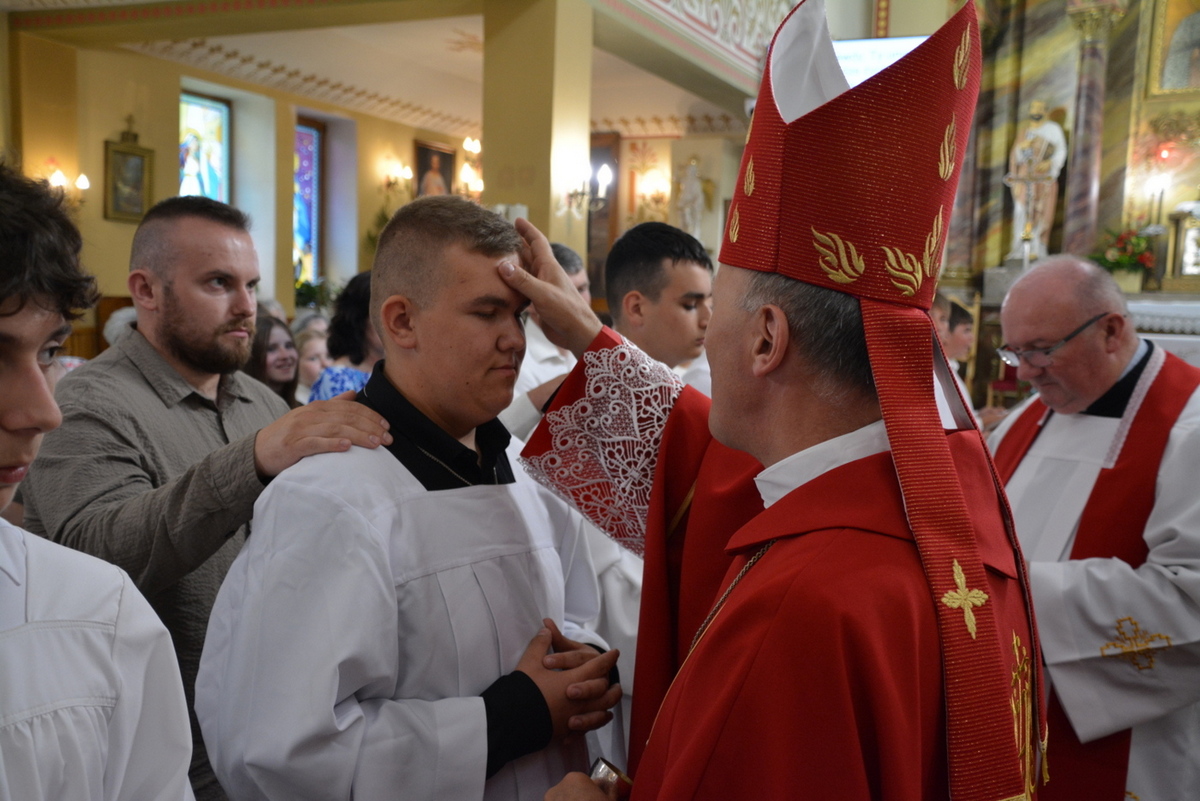 W poniedziałek, 16 czerwca, podczas Mszy Świętej odprawionej o godzinie 17, trzydzieścioro uczniowie klas ósmych z Publicznej Szkoły Podstawowej w Babinie, Publicznej Szkoły Podstawowej w Przyłęku oraz Publicznej Szkoły Podstawowej w Grabowie otrzymali sakrament bierzmowania z rąk Księdza Biskupa Marka Solarczyka. W trakcie Eucharystii, celebrowanej przez Księdza Biskupa, wierni oraz rodziny modlili się za młodzież przystępującą do bierzmowania, prosząc, aby umocnieni Duchem Świętym młodzi ludzie kroczyli przez życie mądrze i zgodnie z wartościami chrześcijańskimi.