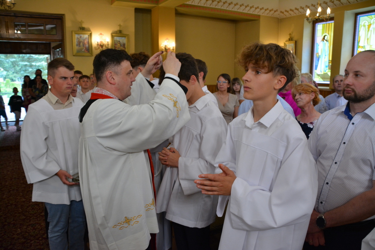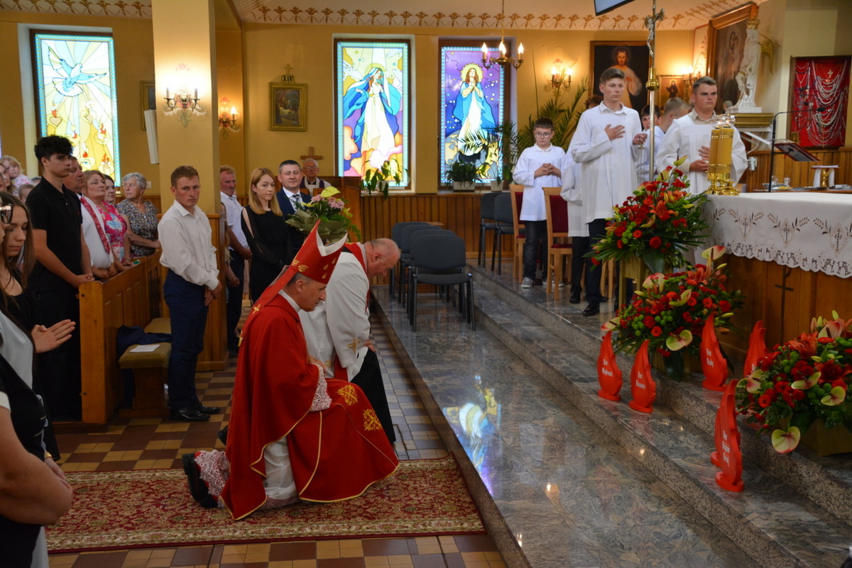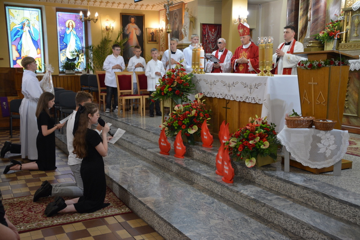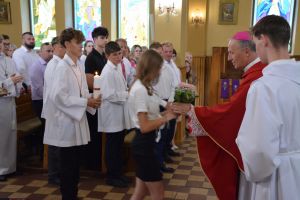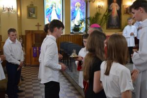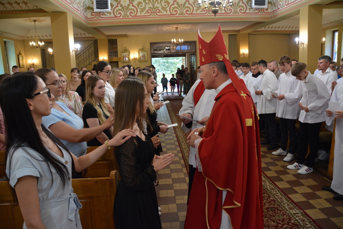 W poniedziałek, 16 czerwca, podczas Mszy Świętej odprawionej o godzinie 17, trzydzieścioro uczniowie klas ósmych z Publicznej Szkoły Podstawowej w Babinie, Publicznej Szkoły Podstawowej w Przyłęku oraz Publicznej Szkoły Podstawowej w Grabowie otrzymali sakrament bierzmowania z rąk Księdza Biskupa Marka Solarczyka. W trakcie Eucharystii, celebrowanej przez Księdza Biskupa, wierni oraz rodziny modlili się za młodzież przystępującą do bierzmowania, prosząc, aby umocnieni Duchem Świętym młodzi ludzie kroczyli przez życie mądrze i zgodnie z wartościami chrześcijańskimi.