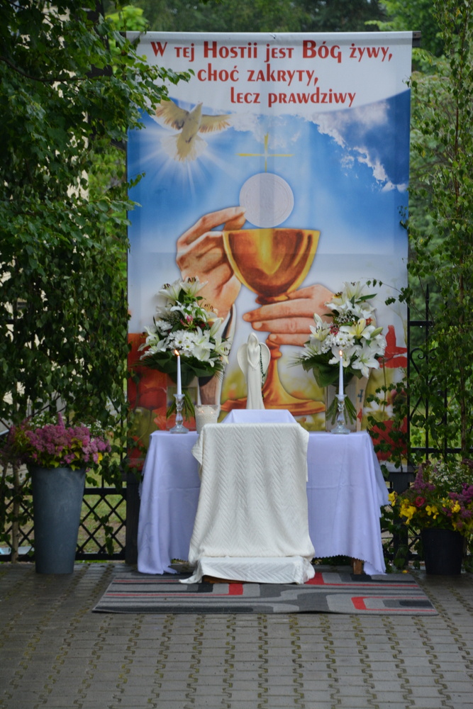 W dniu dzisiejszym obchodzimy Święto Bożego Ciała, którego ważnym elementem jest procesja do czterech ołtarzy z Najświętszym Sakramentem, która w naszym kościele odbyła się po Mszy Świętej o 11.30. Ołtarze, do których przeszła procesja z Przenajświętszym Sakramentem znajdowały się przy: