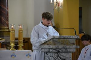 Montaż słowny uczniów został ubogacony piękną muzykom i śpiewem zespołu "Laudans" z Białorusi, który również gościł i koncertował w tą niedzielę na wszystkich Mszach świętych w naszej świątyni.