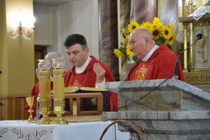 Tegoroczne święto miało wyjątkowy charakter, gdyż oprócz modlitwy za plony, nasza parafia wyraziła wdzięczność Bogu za obecność i trzyletnią posługę kapłańską ks. Daniela. Ks. Daniel, na skutek dekretu Księdza Biskupa Marka Solarczyka, został powołany na stanowisko Prefekta Wyższego Seminarium Duchownego w Radomiu.