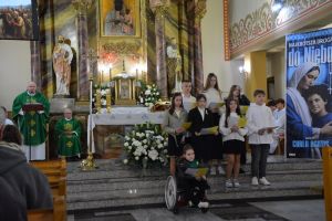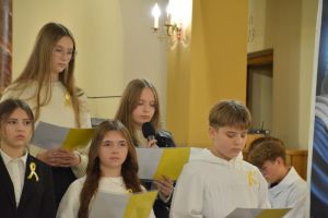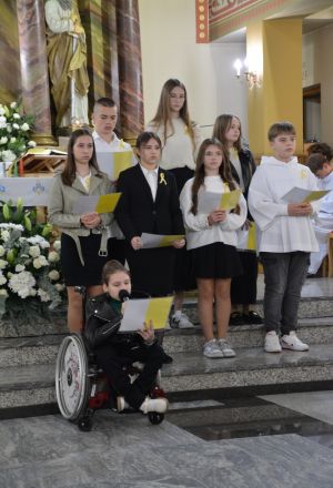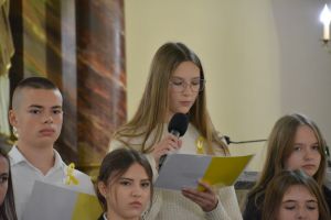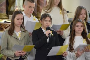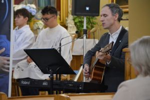 Montaż słowny uczniów został ubogacony piękną muzykom i śpiewem zespołu "Laudans" z Białorusi, który również gościł i koncertował w tą niedzielę na wszystkich Mszach świętych w naszej świątyni.