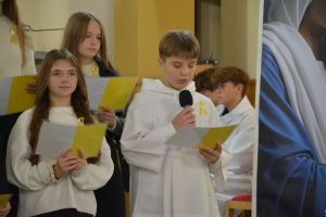 Z tej to właśnie okazji uczniowie z Publicznej Szkoły Podstawowej w Babinie i Publicznej Szkoły Podstawowej w Przyłęku pod kierunkiem Pani Jolanty Kuś zaprezentowali wiernym zgromadzonym w kościele na Mszy Świętej o 11.30 montaż słowno - muzyczny przybliżający postać i naukę Świętego Jana Pawła II. W trakcie wystąpienie uczniowie przybliżyli nie tylko naukę i postać Świętego Jana Pawła II, ale przywołali również postacie trzech jego następców na Piotrowym Tronie: Benedykta XVI, Franciszka i obecnie urzędującego Leona XIV, którzy okazali się być kontynuatorami jego nauki i dzieła. W trakcie montażu nie zabrakło też odwołania do postaci Carlo Acutis i Piera Giorgio Frassati, którzy zostali we wrześniu 2025 roku kanonizowani na świętych Kościoła katolickiego.